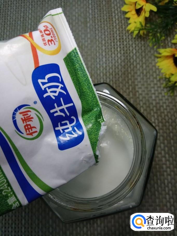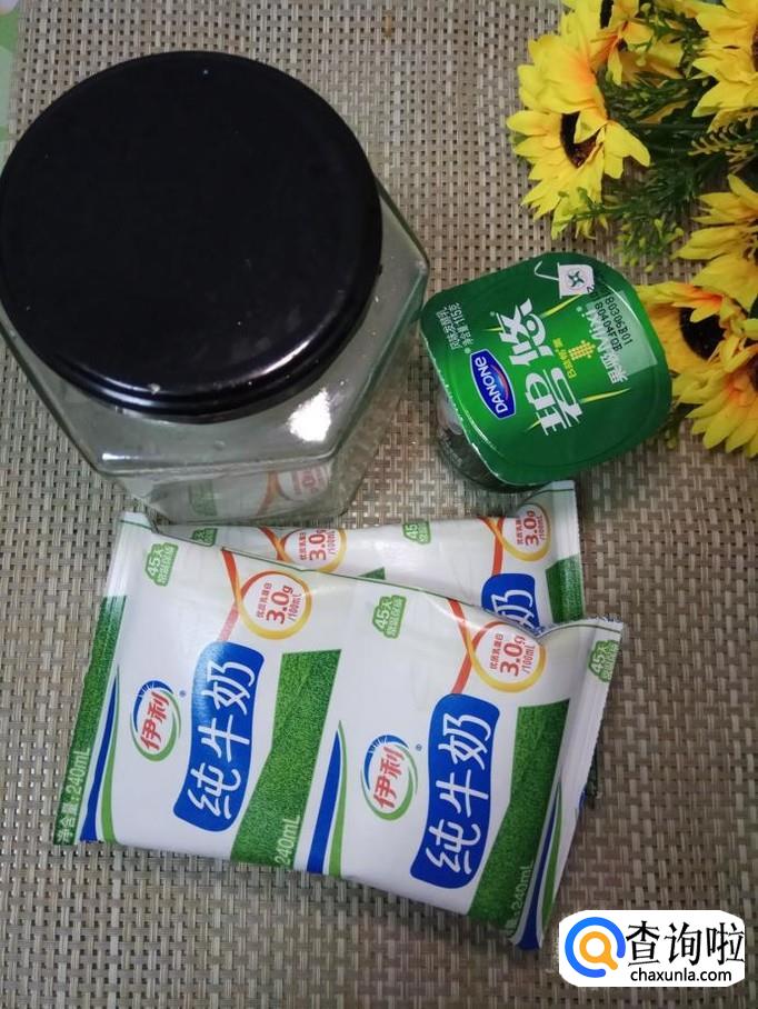 准备两袋纯牛奶,一个玻璃瓶,再准备一小盒酸奶做引子,用温水将玻璃瓶洗一下,这样可以防止杂菌污染。