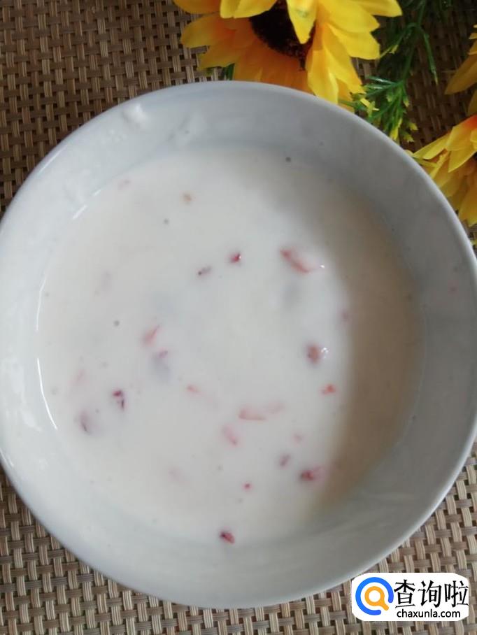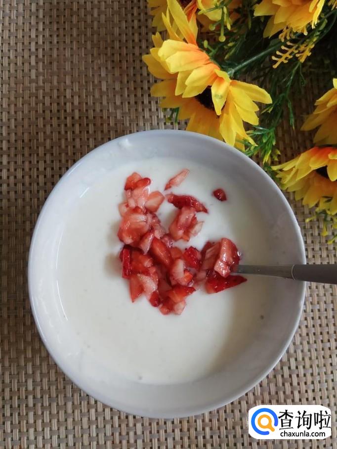 把草莓丁放入酸奶中,搅拌均匀,就可以吃了,酸甜可口。根据自己的口味,也可以加蜂蜜或者别的水果,超市卖的酸奶,大多是经过灭活过的。自制酸奶,富含多种益生菌,更加营养,而且自己做的,随吃随取,非常方便。
