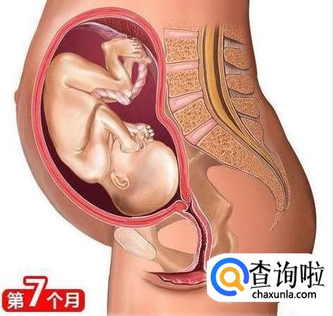 怀孕七个月:两条胳膊弯曲在胸前,两只膝盖提到腹部。看起来像个小老头儿。这时出生能有浅表的呼吸和哭泣。