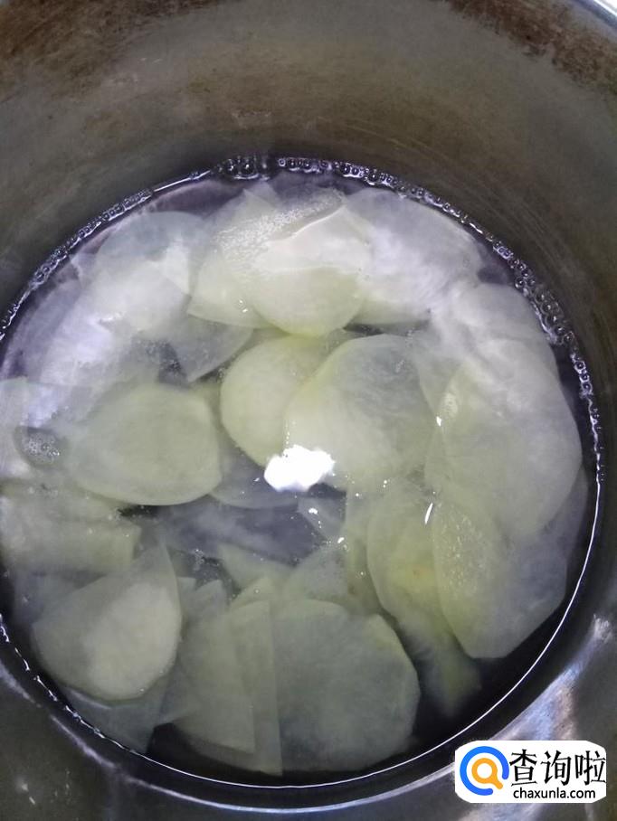 用冷水洗去淀粉,锅中烧开水,焯水。