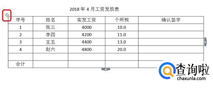 要移动表格,我们只需要把鼠标移动到表格范围内,就可以看到表格的左上角出现了一个如图所示的图标,鼠标左键点住该图标,就可以移动表格至想要的位置。
