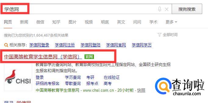 第二种方式:打开电脑浏览器,搜索学信网,然后打开学信网的官网。