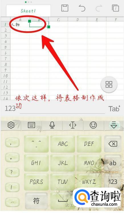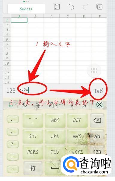 在文字框中输入文字,然后点击Tab,将文字弹到表格中。