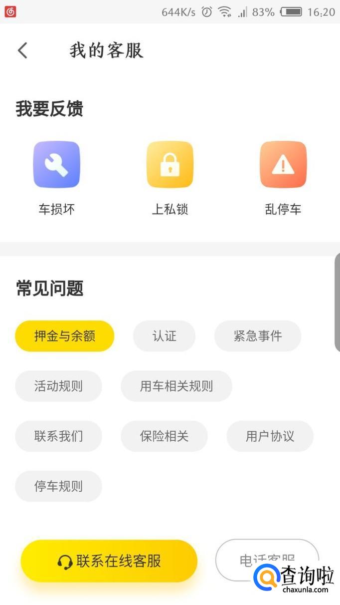 然后在常见问题页面选择押金与余额,选好后联系在线客服
