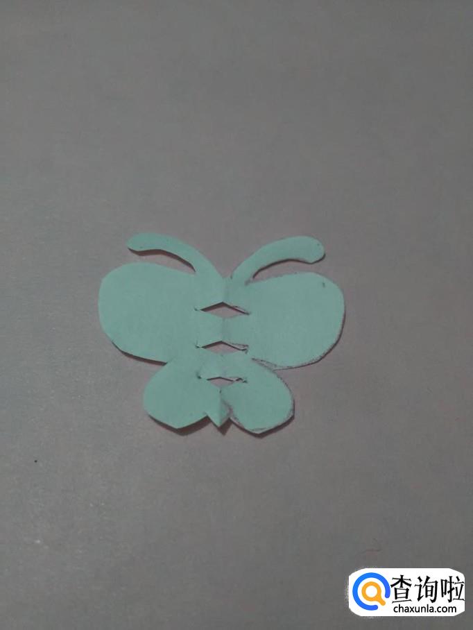 再用剪刀将蝴蝶身上的三个三角形剪下来。