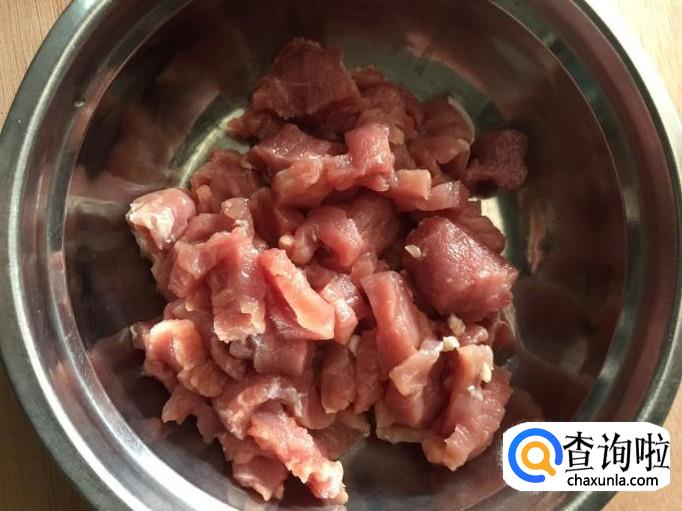 取一块瘦肉,里脊肉更好;将瘦肉洗净,切成片状;将瘦肉放入盆里,加入适量的生抽、料酒,抓匀,腌制半小时;