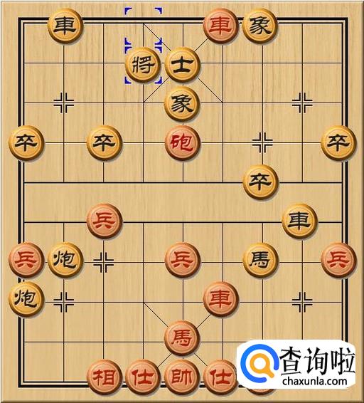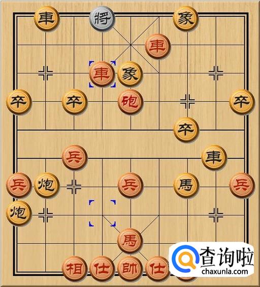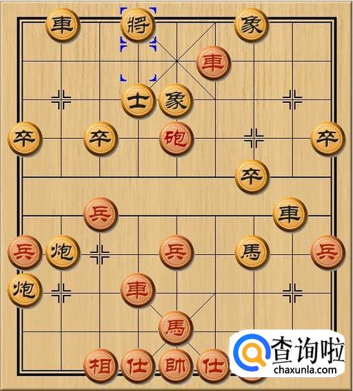 黑方将4退1,黑方老将只好退后一步,避开红方右路车的横向将军。当黑方老将退后时,黑方士失去了黑方老将的庇护,黑方士已经无力防御红方当头车了。如图所示。
