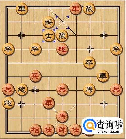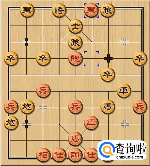 还好黑方早就预料到了红方会来这么一手。黑方士5进4,黑方中士支起,替黑方老将挡住了红方车的当头将军。如图所示。