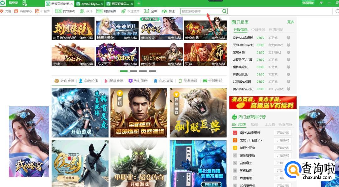 首先,在搜狗高速浏览器中搜索“新浪页游助手”。