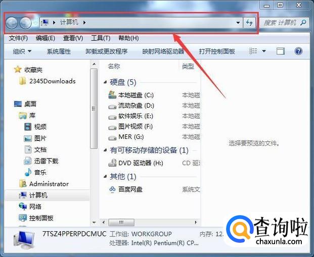 首先,打开桌面上的计算机图标。出现窗口,最顶上的一条是标题栏,鼠标按住拉动可以移动窗口位置。