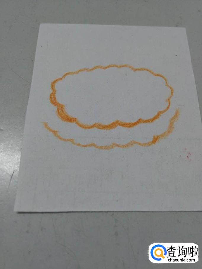 先用彩笔在纸上画一个由弧线组成的椭圆形,表示月饼表面的形状。