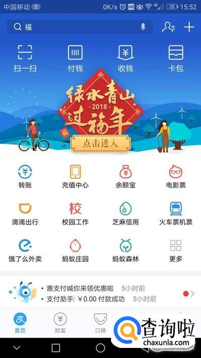 首先,打开支付宝手机客户端,进入首页后点击上方“点击进入”。进入集福活动页面后,我们将看到该活动有三种集福方式。