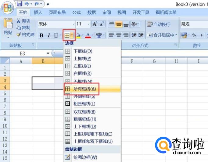 然后我们点击边框边上的下来箭头,弹出的界面,我们点击所有边框;