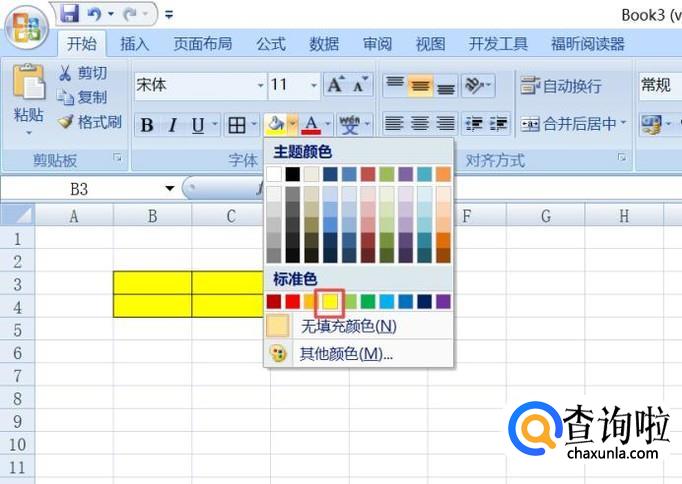 弹出的界面,我们点击黄色作为底纹色;