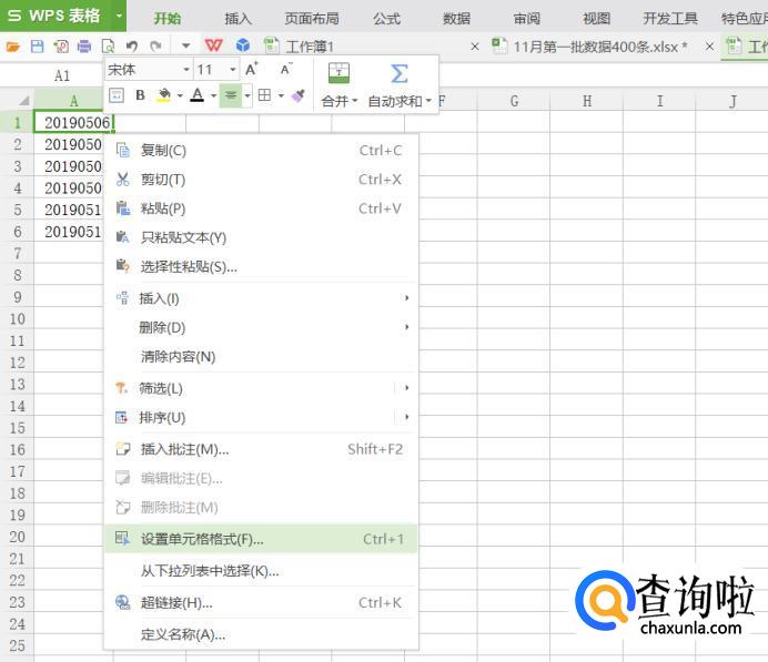 如下图,一列时间数据。先选中要设置的单元格,然后右键,选择“设置单元格格式”。