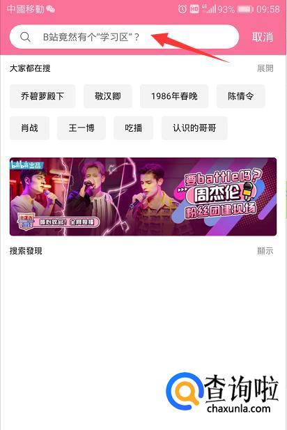 在你的手机哔哩哔哩主页面找到“搜索”的位置,点击进入搜索页面。