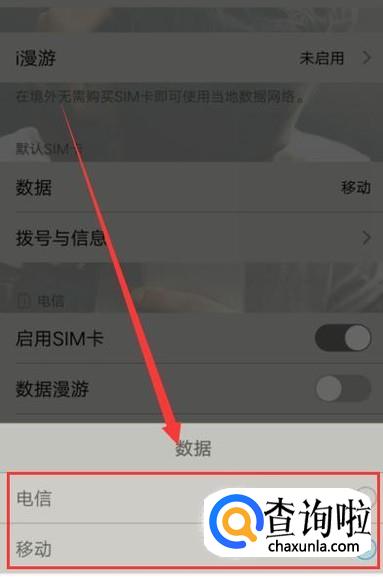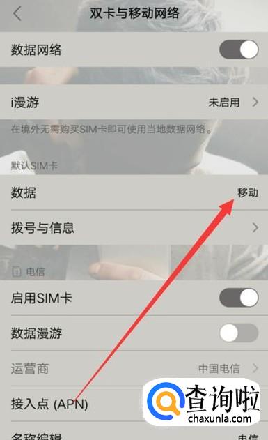 点击“双卡与移动网络”,进入到里面,如图所示。