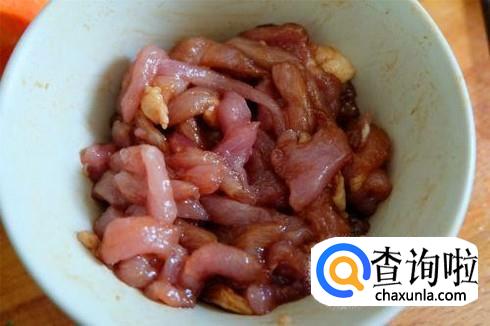 瘦肉汤不要选择肥瘦相间的五花肉,最好是选择里脊肉比较鲜美,肉切块之后用生抽耗油以及葱段姜片腌制一下,加点淀粉抓一下。