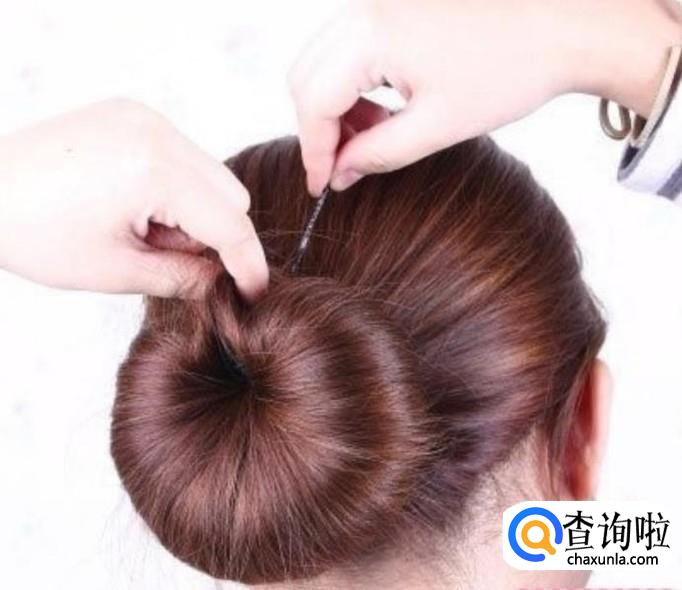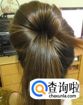 步骤五:好看的花瓣花苞头就完成了,准备好绳子和发夹固定好其他的碎发,也可以根据自己的喜欢别上漂亮的发卡。