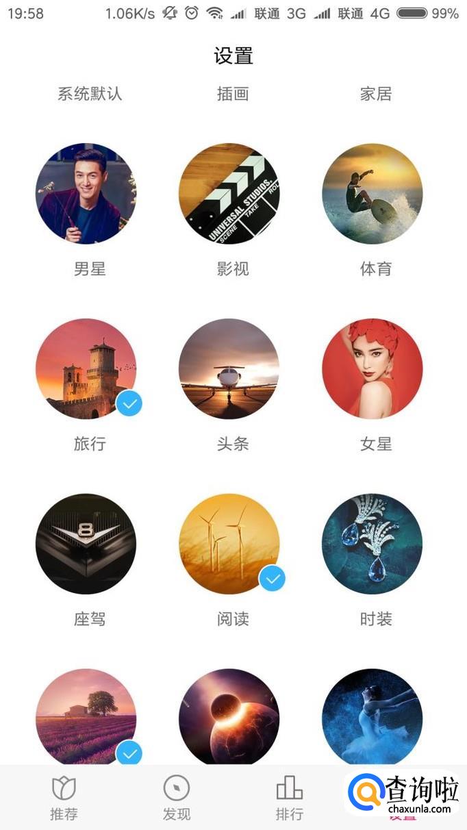 最后就是设置锁屏画报显示的图片类型,按照自己喜欢的图片类型,点击图片分类即可。