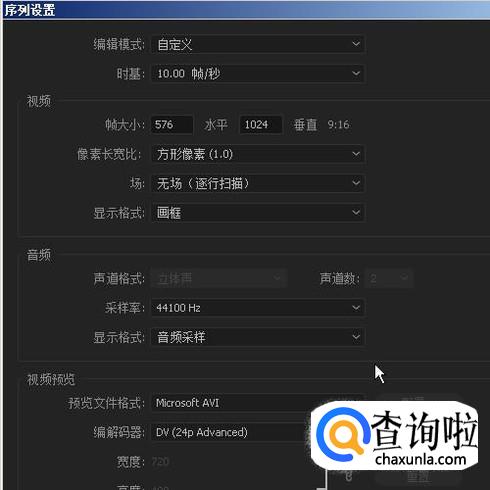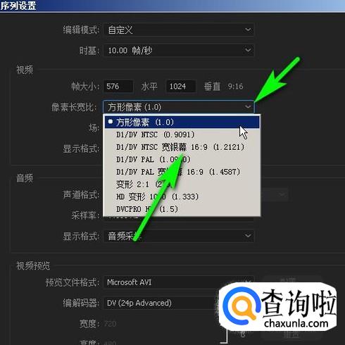 弹出序列设置面板。如图所示,点击下拉按钮,弹出菜单中,选择一种画面比例,比如,16:9的这种。再点击确定即可。