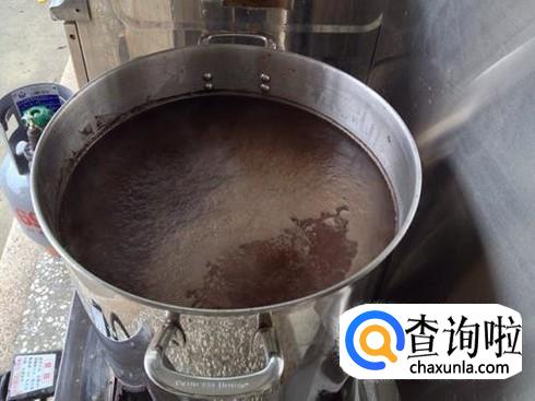 4个月后,将罐子里的液体倒出,用布过滤,流出来的液体就是半成品酱油啦!再将这些半成品酱油倒到锅里加热,去渣,真正的酱油就成形了。