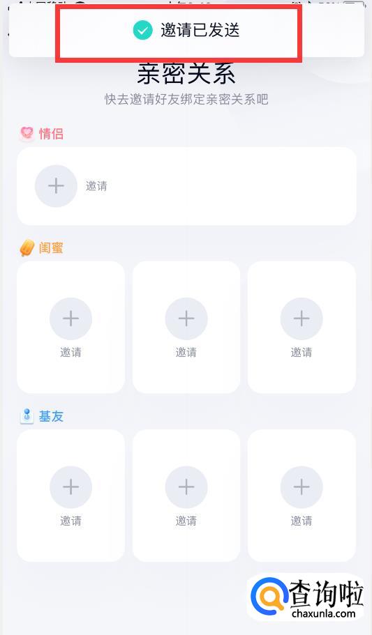点击闺蜜下方的邀请“+”号图标,点击你想要邀请成为闺蜜的好友,系统会自动为你向TA发送邀请。