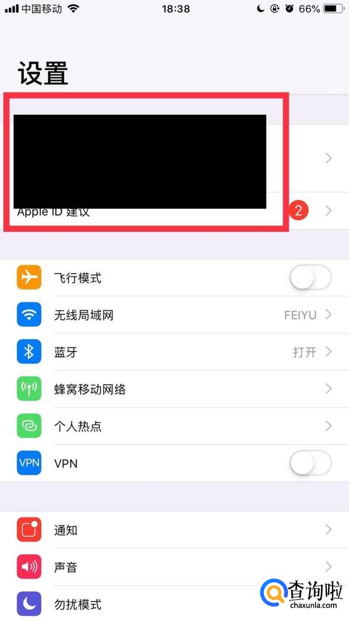 然后点击我们的Apple id,如下图所示。