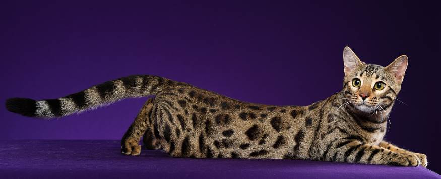豹猫优美的身体线条和霸气外露的气质让很多迷妹为之倾倒。它们就像是小型猎豹,在阳光下闪闪发光,与野生豹猫相比,孟加拉豹猫却更加温顺亲人,但它们也有着豹猫独有的高智商。在主人的教育之下,很快会学会翻跟头和叼物来回的动作。