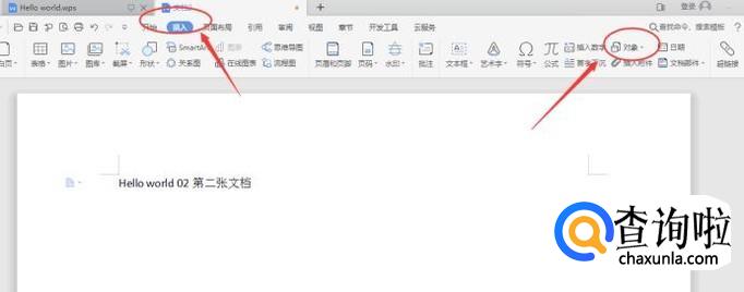 然后切换到【插入】选项卡,找到下方的对象,如下图所示: