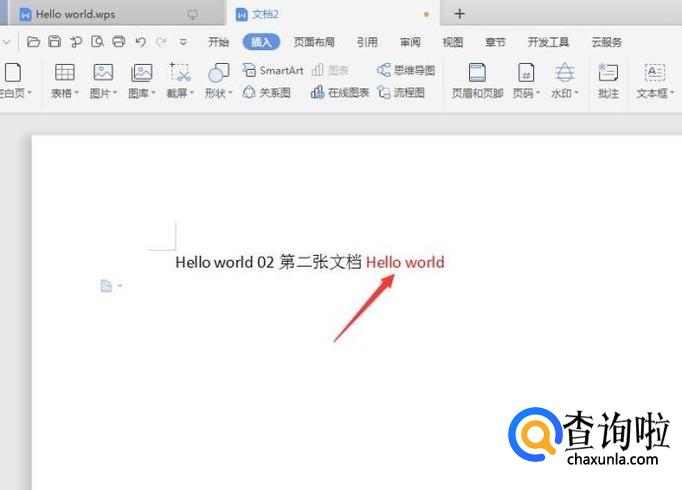 首先新建2章wps文档,分别在这两张文档写上内容,如下图所示: