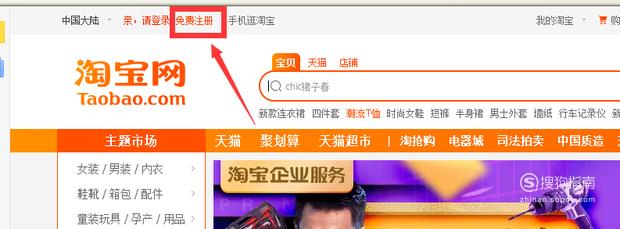 进入淘宝官网,点击免费注册。