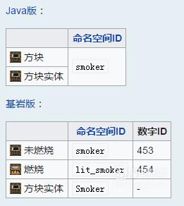 烟熏炉当前的功能和熔炉相似,但是烧炼食物的速度是普通熔炉的两倍,可以用漏斗和投掷器向里面放东西(漏斗或投掷器)或从里面拿东西(漏斗);当里面有生食和燃料时,它的方块状态会改变为LIT且物品会被烧炼。