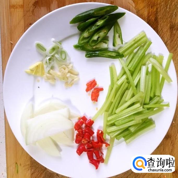 接下来我们需要把一些配料切好:葱姜蒜切沫、小米椒切段备用。