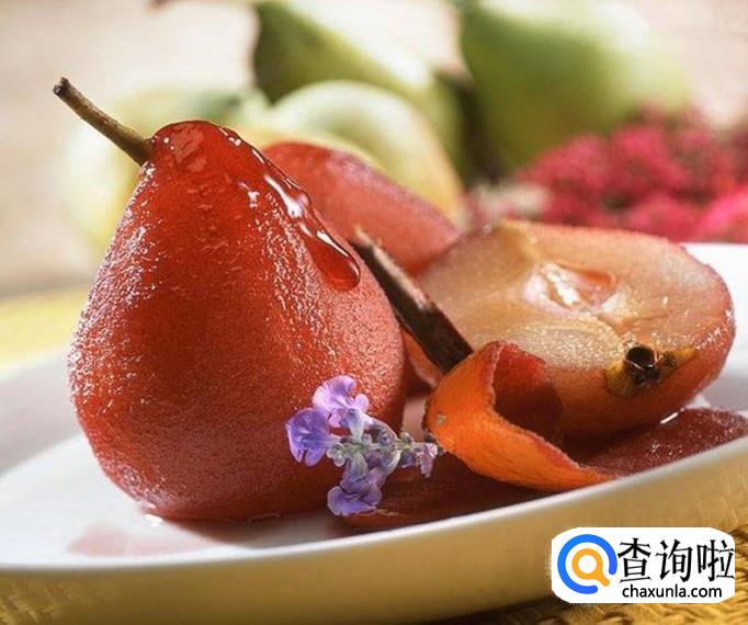 红酒煮梨做法很简单,梨洗净,放入锅中,倒入适量红酒,再放入少许桂皮、丁香和冰糖,小火煮10分钟,放凉即可食用。