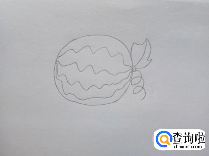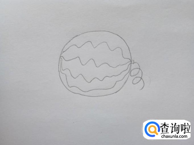用波浪线来表示西瓜表面的花纹,确定好西瓜的头和尾,连接波浪线。