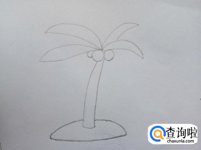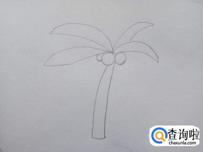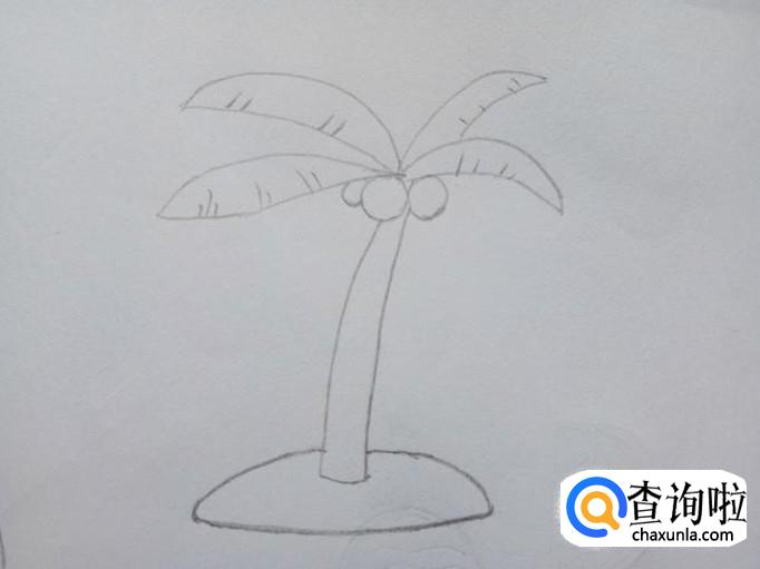 为了使椰树更形象,在叶子上可以画些短线,体现椰树的羽毛状叶片。画完后,一棵高大的椰树就出现在你的眼前。