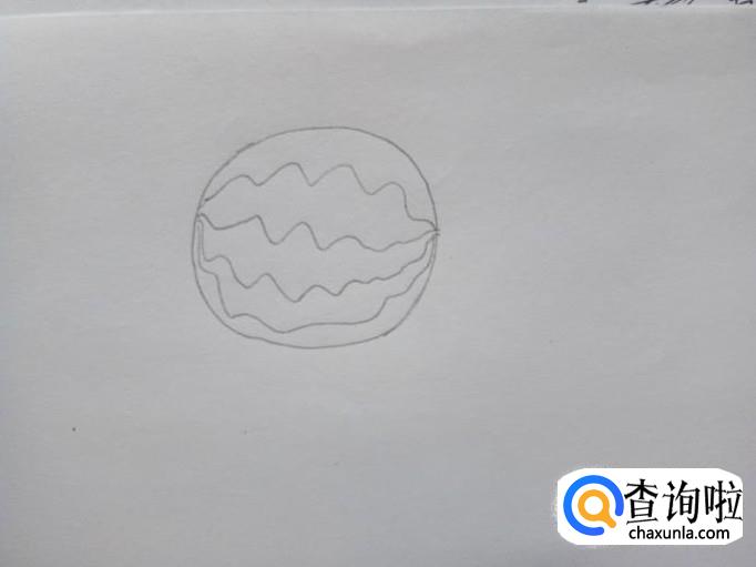 画出一个圆形,稍稍有点扁,这是西瓜的大致形状。
