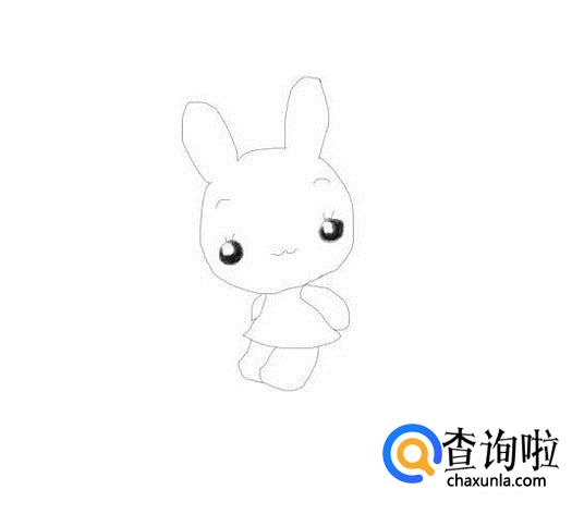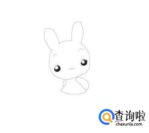 在头部下面画出小兔子的两只胳膊,然后再画出小兔子的身体,如图所示: