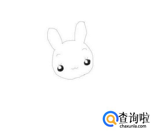再在小兔子的头部上画出小兔子的两只眼睛,然后在画出小兔子的嘴巴,如图所示: