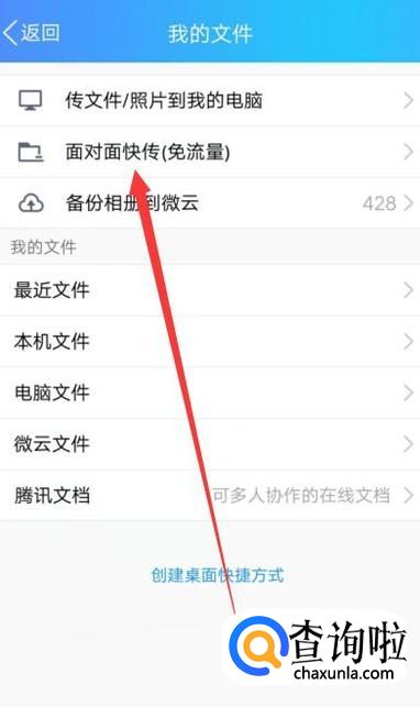 进入之后,点击“面对面快传”,进入下一页面,如图所示。