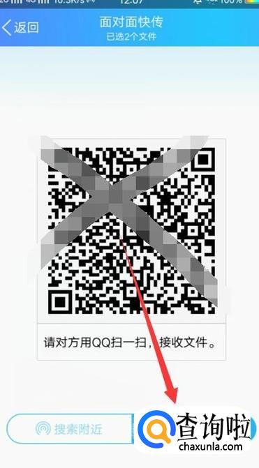 选择用二维码发送,用另一部手机的QQ扫描即可,如图所示。