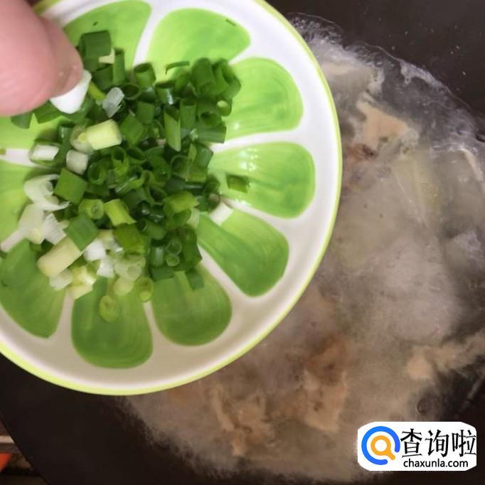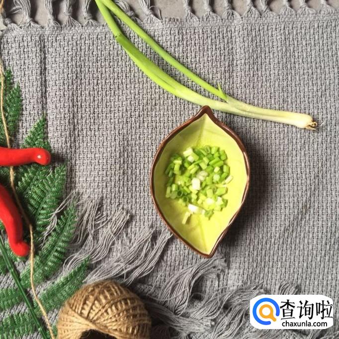 接着把香葱切成葱花,倒入锅中煮1分钟,就可以起锅了。