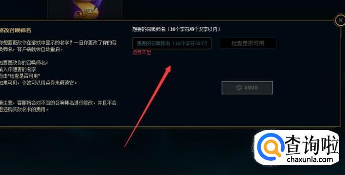 点击之后你会看到,让你输入你想更改的名字,如果你点券足够的话,直接输入名字,系统检测可用的话,直接就可以用了。改了之后你的战绩什么的用之前的名字就插不出来的。