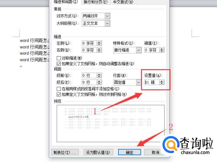 选择固定值命令之后,在“设置值”位置即可设置行间距距离,设置好之后点击“确定”即可,如图所示。