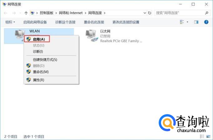 之后我们再进行右击,弹出的界面,我们点击启用,之后就连接上网络了。