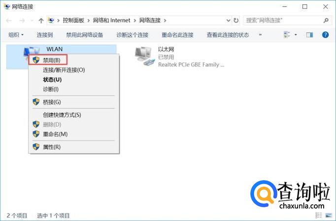 然后我们右击我们连接的网络,弹出的界面,我们点击禁用;