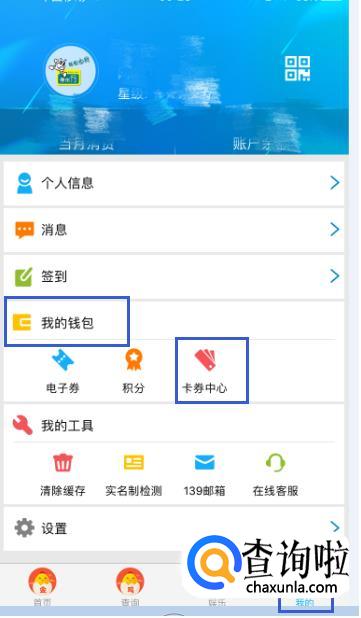 等到签到天数够了,会赠送卡券,点击下方我的,选择我的钱包,然后就可以找到卡券。