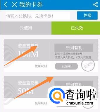 然后在未使用里找到还没使用的,点击使用就可以领取了。点击已失效的就是已经使用过的。