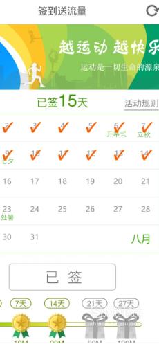 坚持签到,签的天数不同会有不同等级的流量赠送。